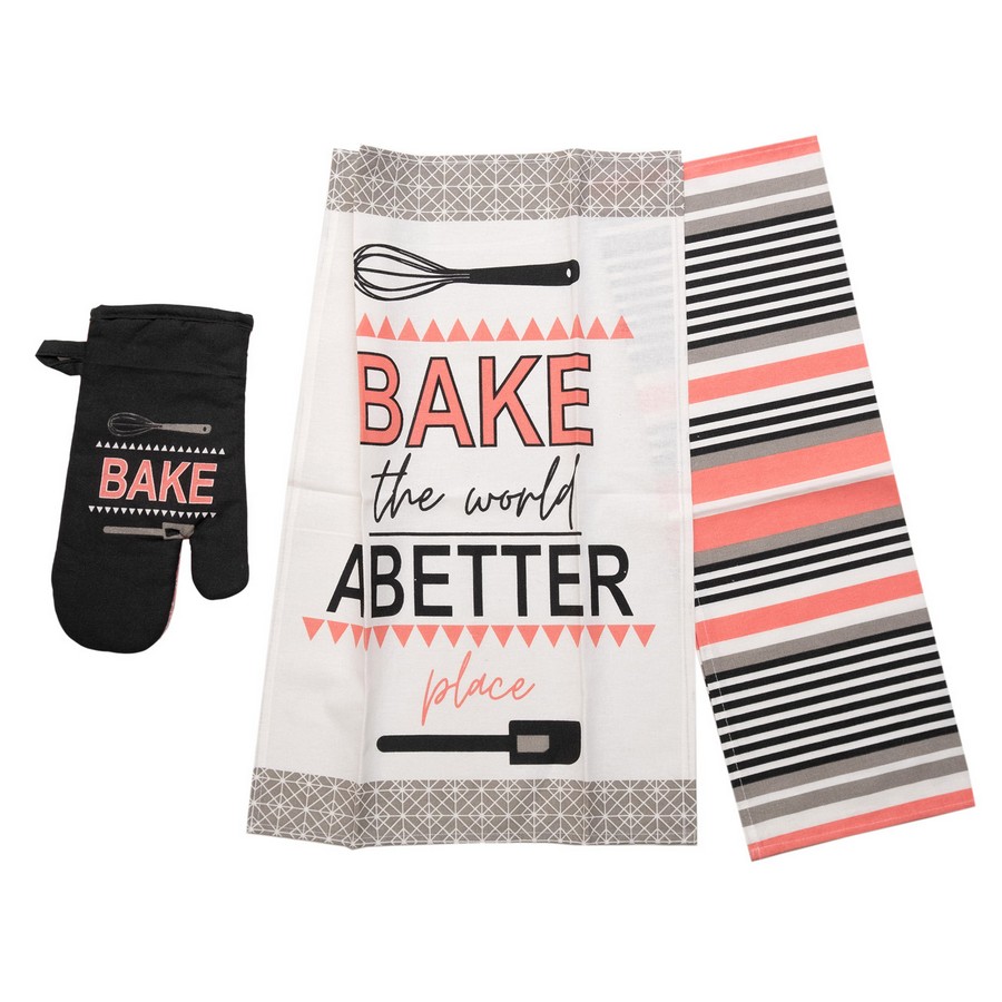 Σετ Κουζίνας 3 Τεμ (Γάντι & Ποτηρόπανα) Τυπωτά 970 Κοραλί